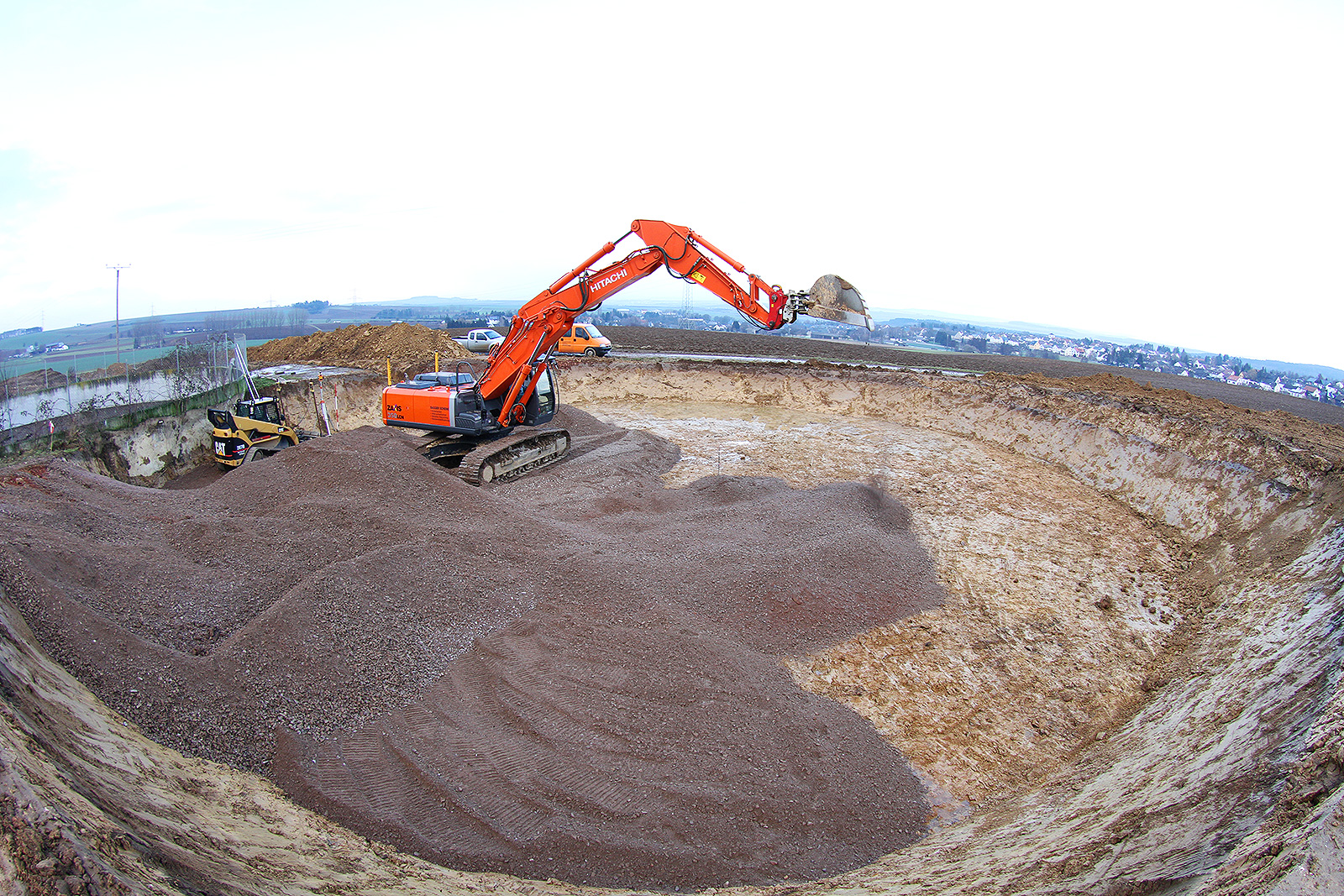 Erstellung von Baugruben vom Einfamilienhaus bis zu großen Industriehallen, Fundamentaushub, Verfüllarbeiten, fachgerechtes Setzen bzw. Anschliessen von Zisternen und Ölabscheidern.