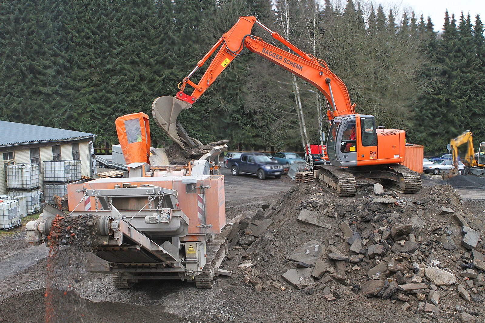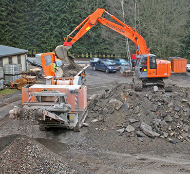 Mit unserer mobilen Brechanlagen können wir vor Ort viele Arten von Bauabfällen (z.B. Betonteile, Bauschutt, Asphalt oder Naturstein) zur sofortigen Wiederverwendung aufbereiten.
